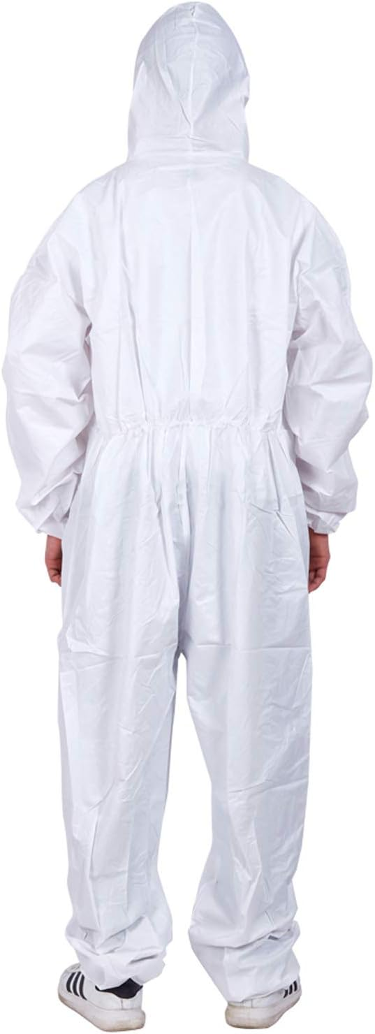 About this itemReliable Protection - Pack of 3 disposable paint suits provide full upper body coverage. Provide protection from dirt, grime, light liquid splashes and spills.Great Fit - Size: Medium, fits tall 5'2"-5'6". Find your size based on sizing chart.Multiple Application - Ideal for painting, cleaning, home decoration works, equipment maintenance, manufacturing, construction, etc.Soft and Lightweight - This disposable coveralls be made of lightweight polypropylene called SMS, they are soft and comfortable.Excellent Design - This protective suit feature zip front closurer, attached hood, elastic cuffs, waist and ankles.