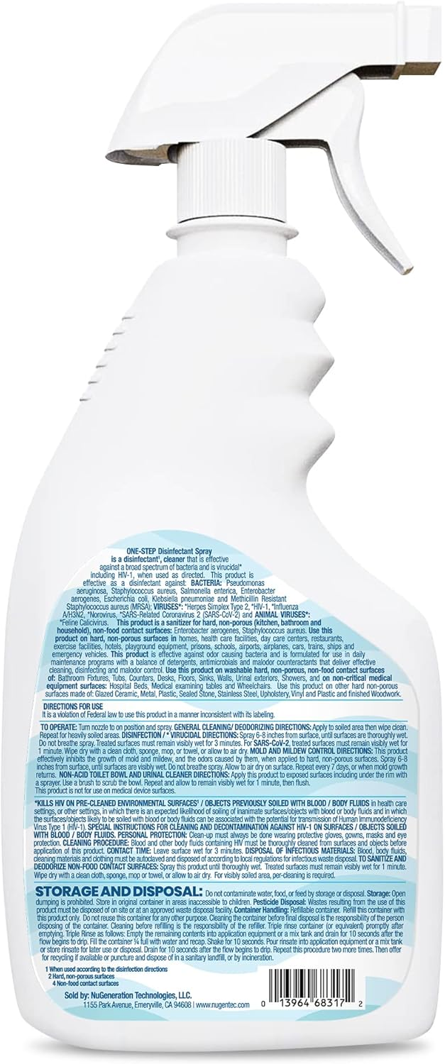 KILLS 99.9% OF BACTERIA AND VIRUSES: NuRinse One-Step disinfectant spray kills 99.9% of bacteria and viruses, including the virus that causes COVID-19.