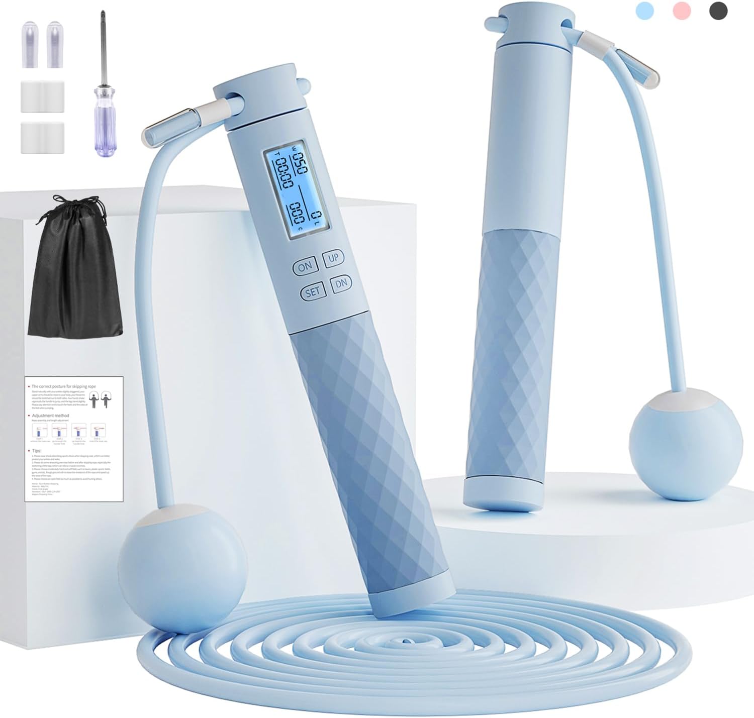 Fitness Jump Ropes with Calorie Counter and Silicone Handles for Women Men Kids with Speed Cordless Ball and 9.2 ft Adjustable Anti-Tangle PVC Wire Rope for...