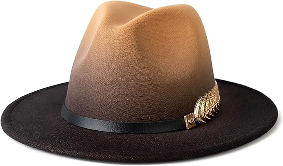 Gossifan Women Gradient Color Fedora Wide Brim Felt Panama Hat with Belt Buckle