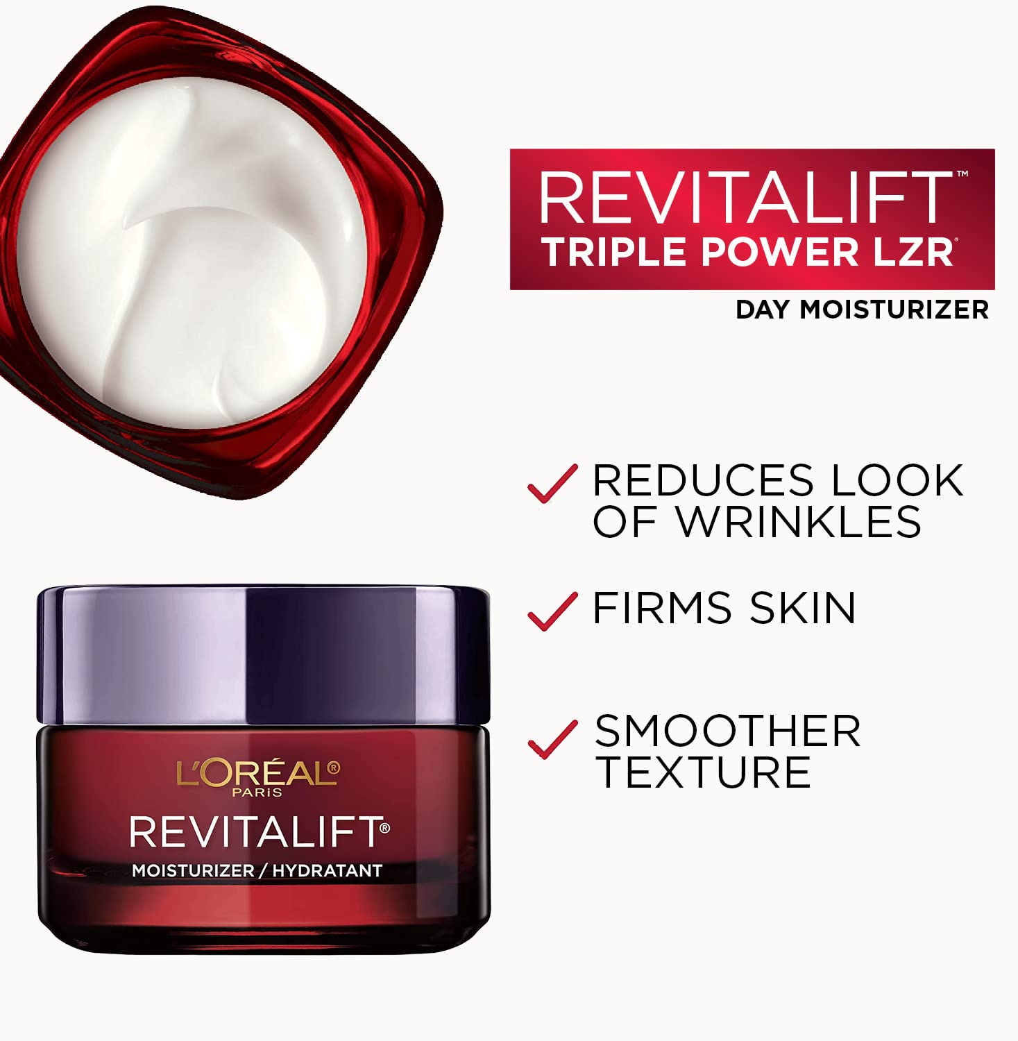 L'Oreal Paris Revitalift Triple Power Anti-Aging Face Moisturizer, Pro Retinol, Hyaluronic Acid & Vitamin C to Reduce Wrinkles, Firm & Brighten Skin, 1.7 Oz