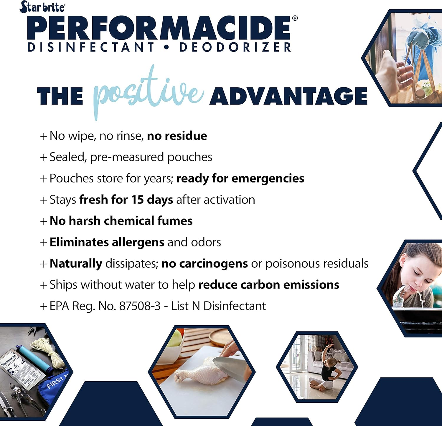 STAR BRITE PERFORMACIDE Disinfectant - Kills COVID-19 Virus in 30 Seconds - No Rinse, No Wipe, No Residue - Just Add Water - Gallon Kit with 3 Refill Pouches & Sprayer (102000)